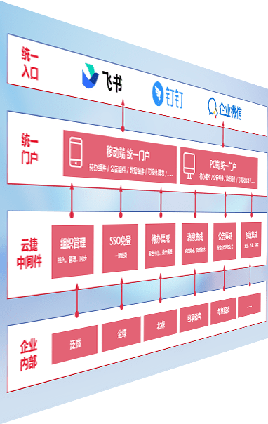 对协作平台提供支持服务,,,支持企业应用与协作平台对接,,包含组织同步、、、消息集成、、待办集成等。。支持目前主流的协作平台:钉钉、、、企微和飞书。。。。